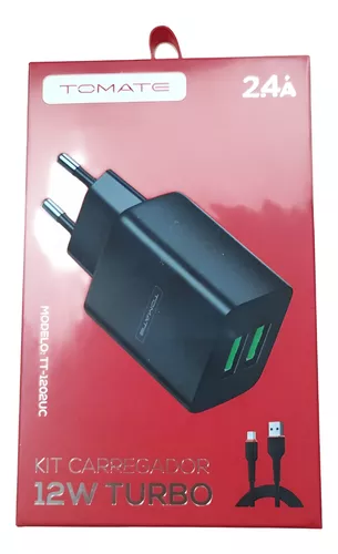 Carregador Para Type-C Turbo Com 2 Portas Usb 12w Un 2.4a – Tomate – Tt-1202uc