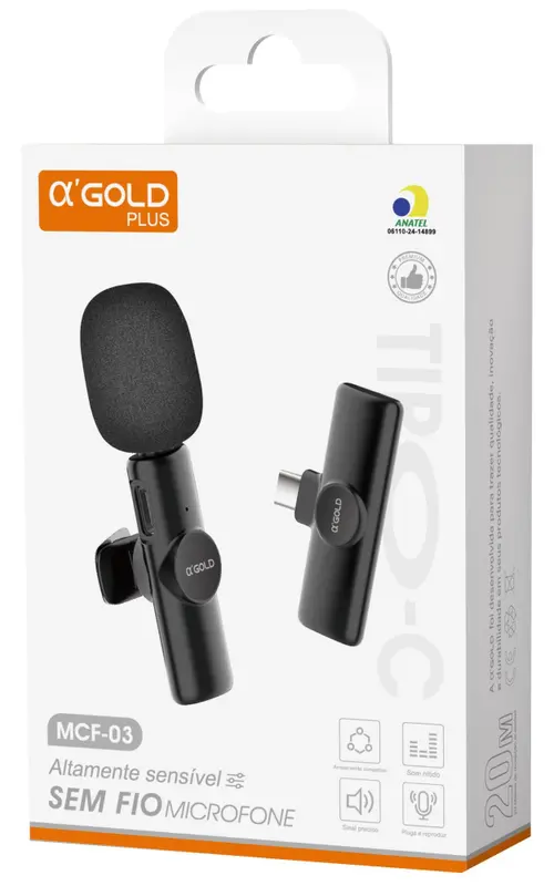 Microfone Sem Fio Tipo-C – A’Gold – MCF-03