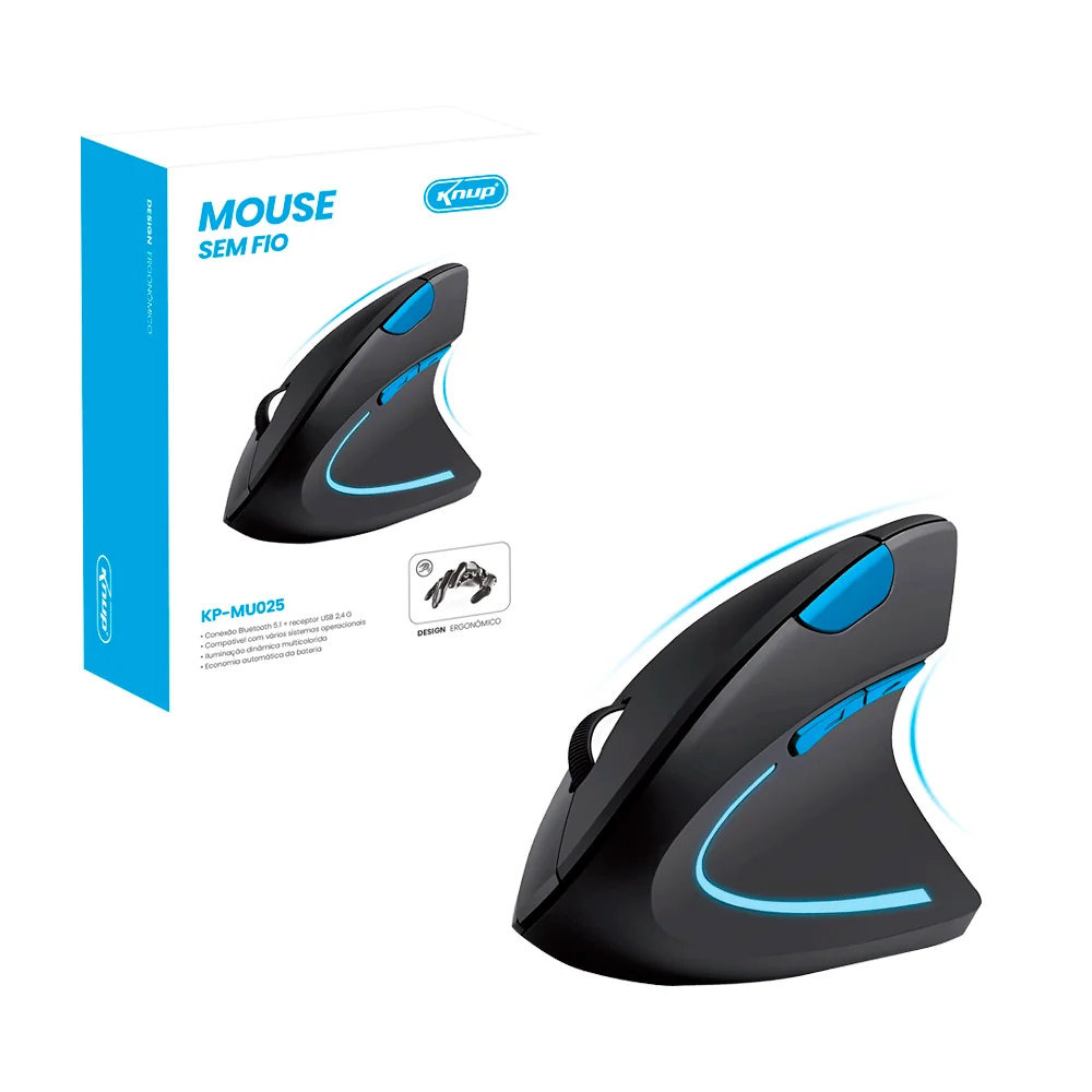Mouse Ergonômico Sem Fio Bluetooth e Dongle – Kp-Mu025 – Knup